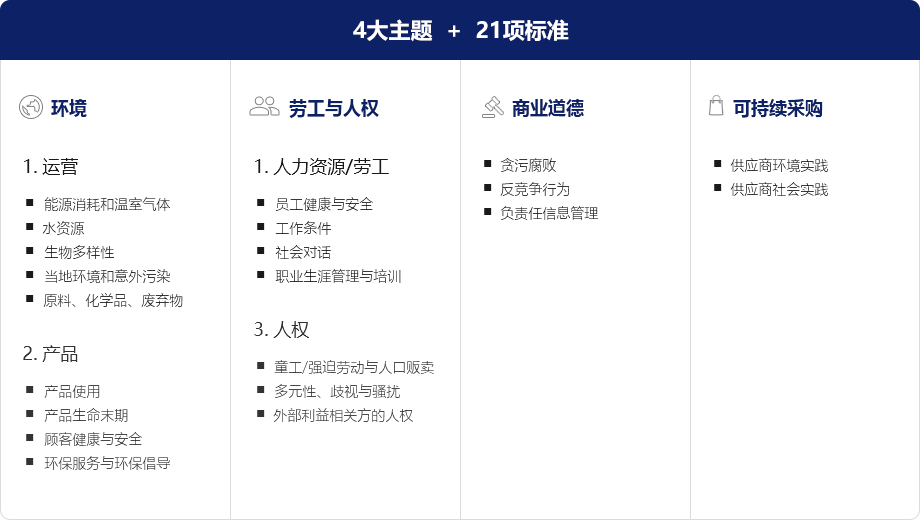 * 分数45分以下或任一主题(即:环境、劳工和人权、商业道德、可持续采购)分数低于或等于20,则无勋章。