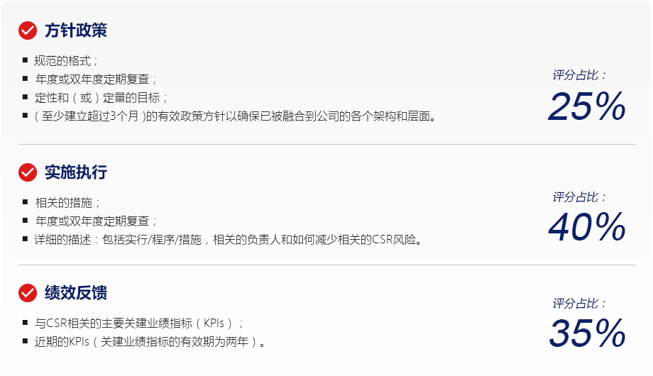 通过可靠的评级和全球标准,能提升企业社会责任实践的透明度,开发具有可持续性的新产品、挖掘创收机会。