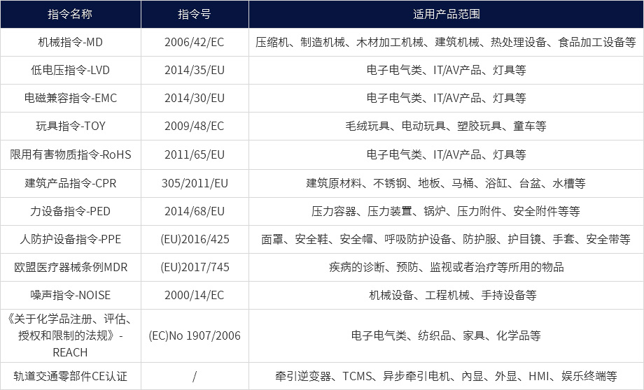 欧盟CE认证常见指令